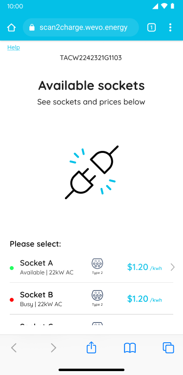If the charger scanned has more than one socket, select the one you want to use.