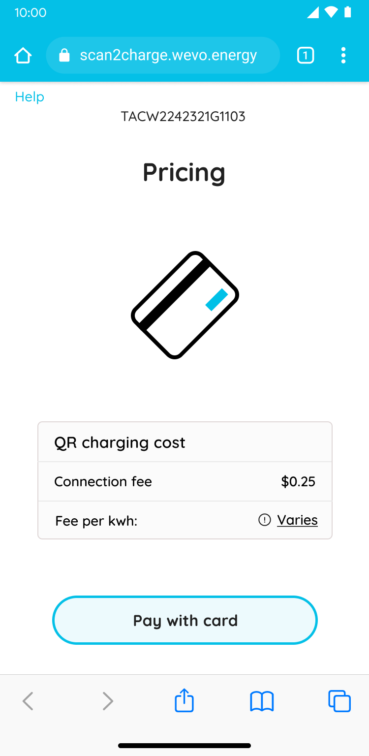 5. Review the charging cost and tap “Pay with Card” to proceed.